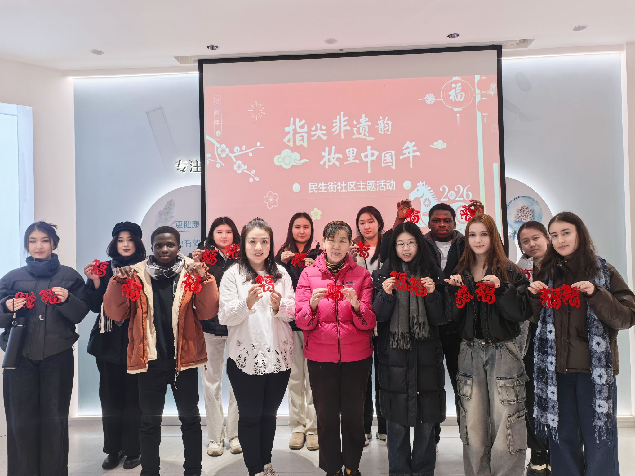 为迎接新春佳节,以剪纸寄福传递美好祝愿。1月28日上午,国际教育学院组织来自加纳、吉尔吉斯斯坦、土库曼斯坦等国家的10余名国际学生走进民生街社区,体验非遗剪纸文化。
